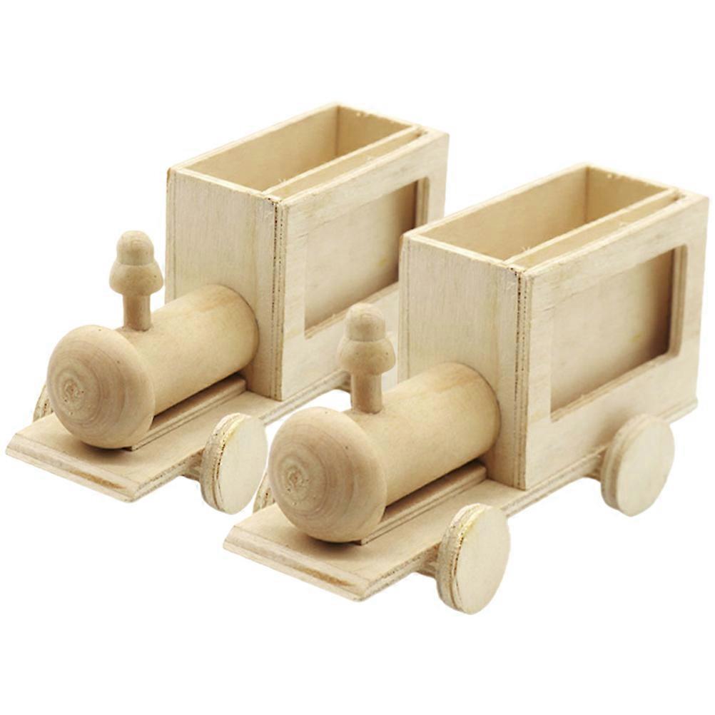 Wooden Train Pen Container for Kids 2Pcs DIY Craft Unfinished Model