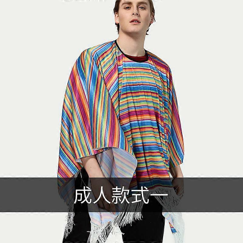 Mexican Poncho for Adults, Ethnic Fiesta Costume, Halloween Cosplay Cape