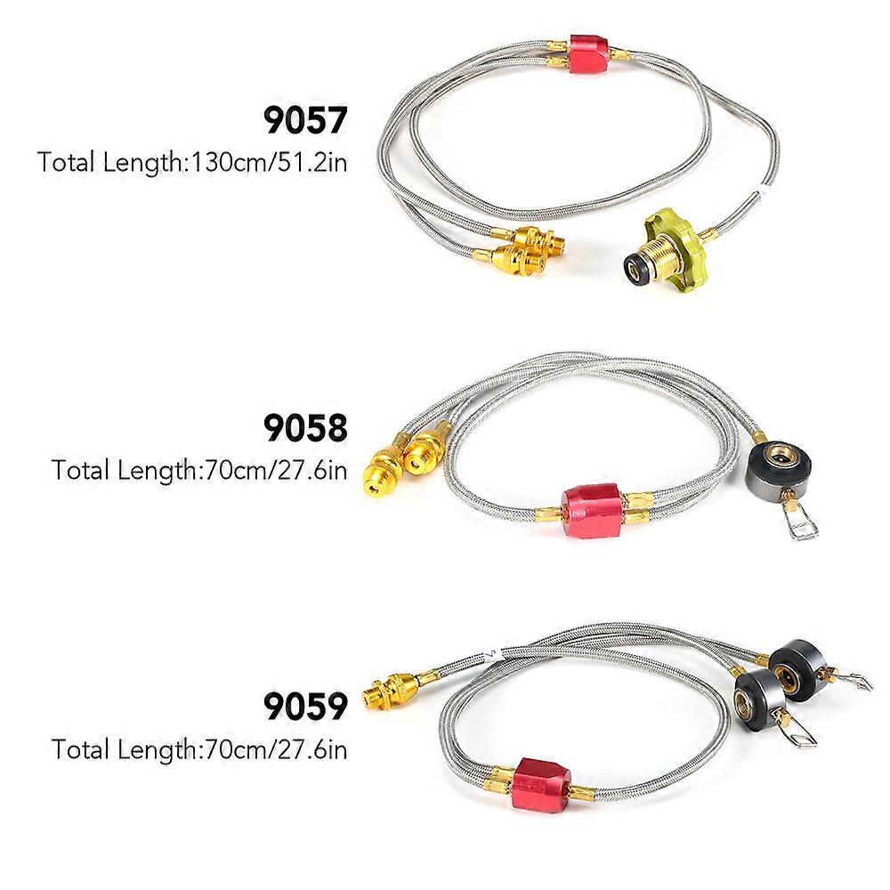Adapter Hose Adapter Burner For Double Camping Stove Flat Cylinder Tank Adapter For Outdoor Fishing Picnic Portable Flat Cylinder Tank adapter hose can connect to two camping stoves,which is good choice for camping.   Features: Safety,portable and no gas leak easily,suitable for camping. Can easily connect directly with two camping stoves and a flat tank for outdoor cooking. The total length of hose up to 70cm/27.6in,and easy for folding up and carrying. Great for camping, tailgating, heating needs or having an outdoor cookout.   Specification: Model: 9057/9058/9059(optional) Material: Copper, aluminum, stainless steel, silicone Length: 70cm/27.6in Package size: 16*13*2cm/6.3*5.1*0.8in Package weight: Approx. 133.9g/4.7oz   Package List: 1* Adapter Hose