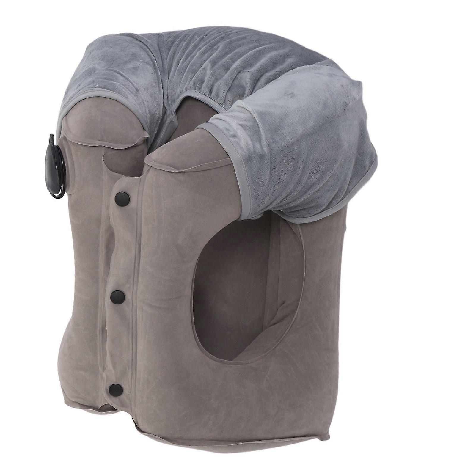 Gray Inflatable Neck Pillow 30x30x45cm PVC Flocking Travel Rest