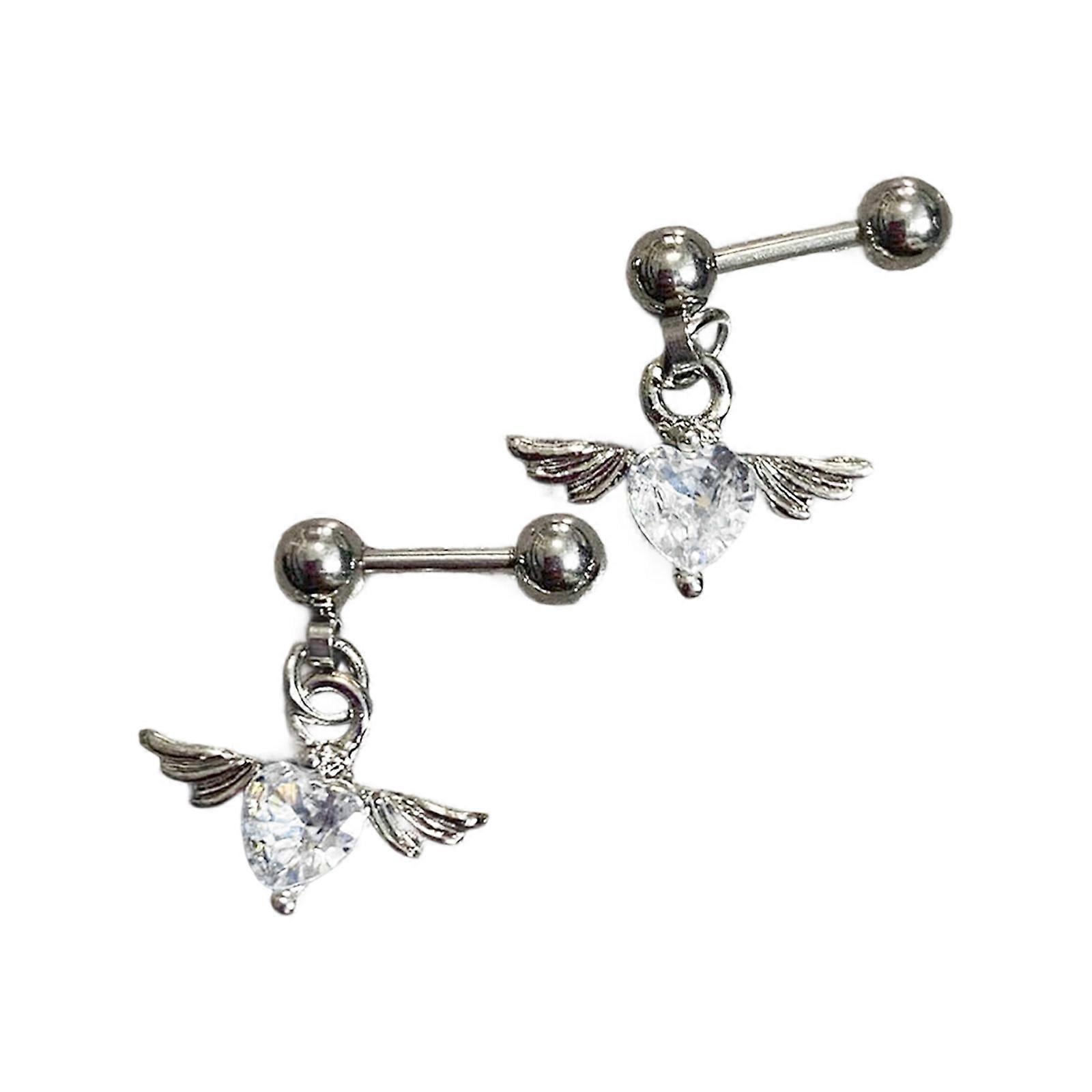 Steel Winged Heart Earrings Modern Minimalist Style Ear Studs Comfortable Wear All Day Long Jewelry for Sensitive Skin White
