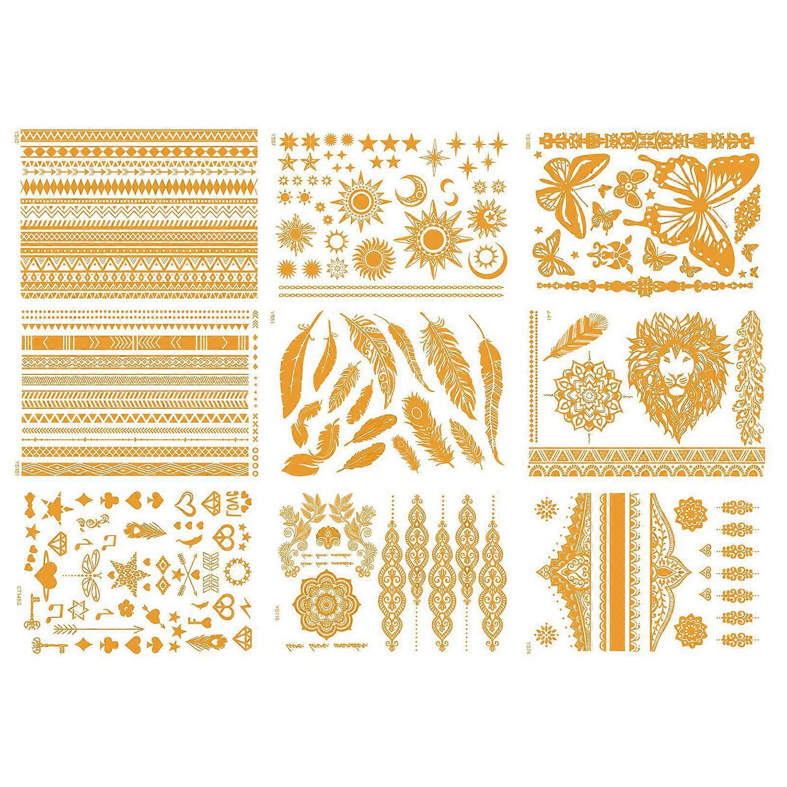 Long Lasting Metallic Temporary Body Art Unique Designs Easy Transfer Skin Stickers For Festivals Vacations Multicolor