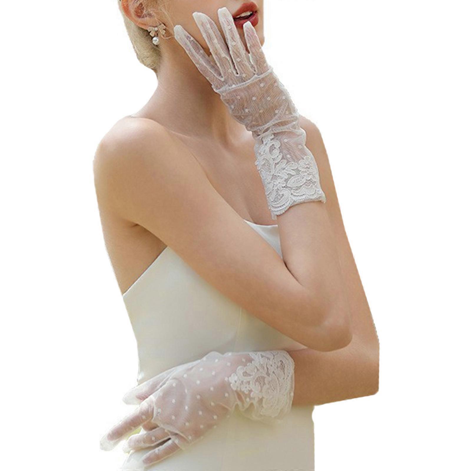 Sheer Formal Bride Gloves With Lace Embroidery Flower Pattern For Bride Wedding Ceremony Party Guests Photography Props milky
