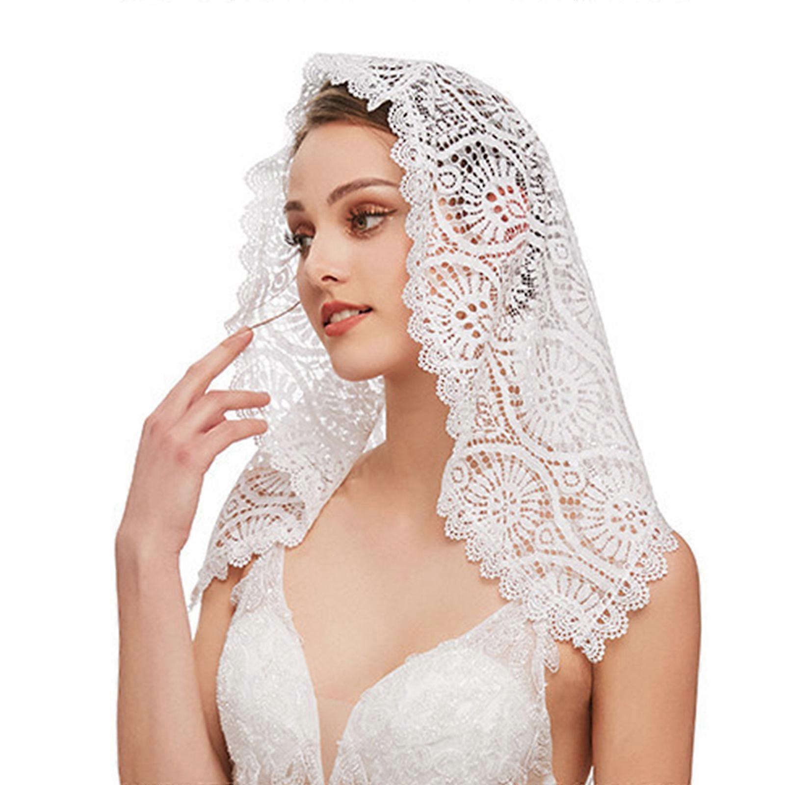Elegant Bridal Shower Head Scarf Lace Mantilla Latin Mass Church Veil Hair Styling Accessory with Hollowout Pattern White