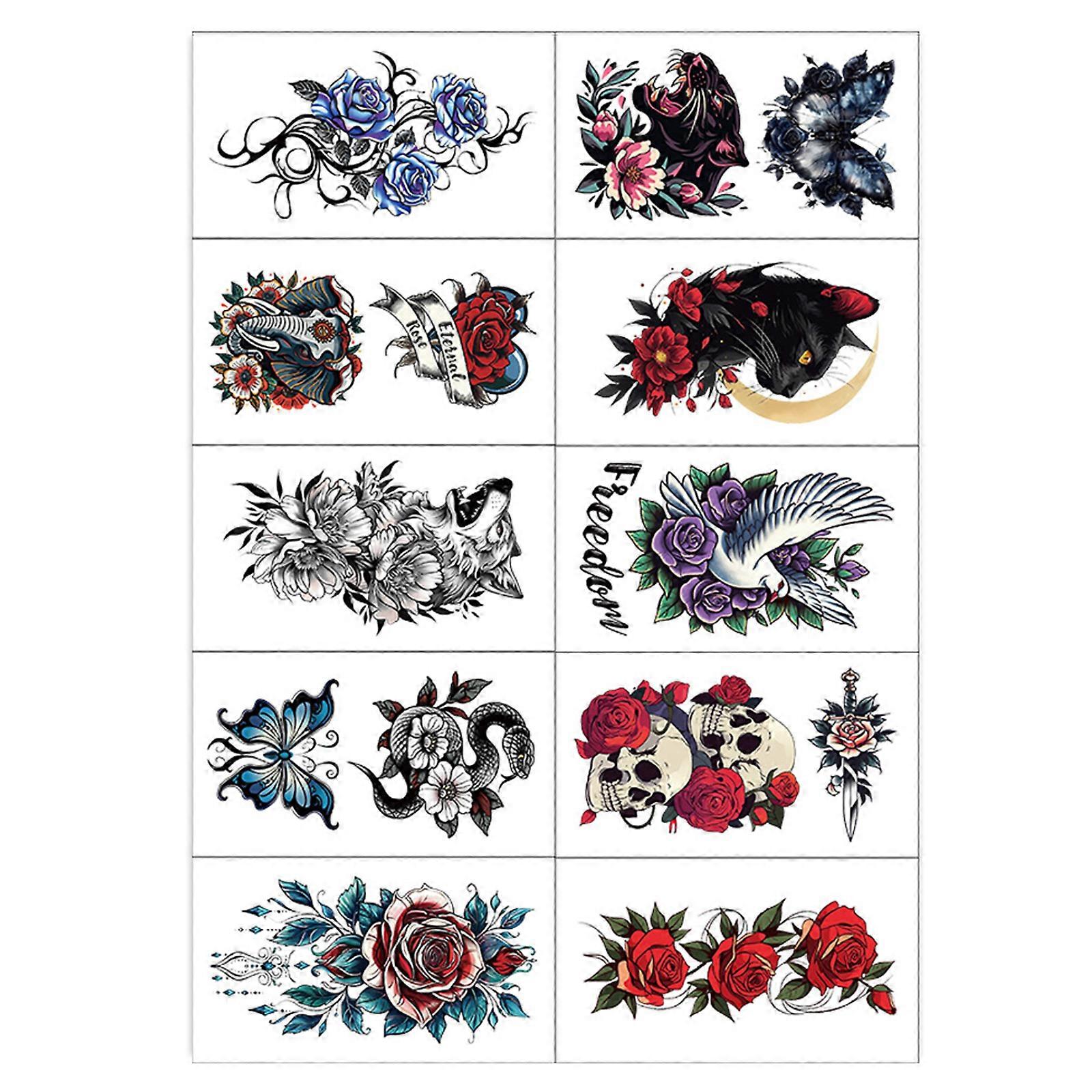 Premium Dark Art Temporary Tattooss Skin Art 10Sheets Skin Friendly Body Stickers Decals For Sensitive Skin Adults Multicolor