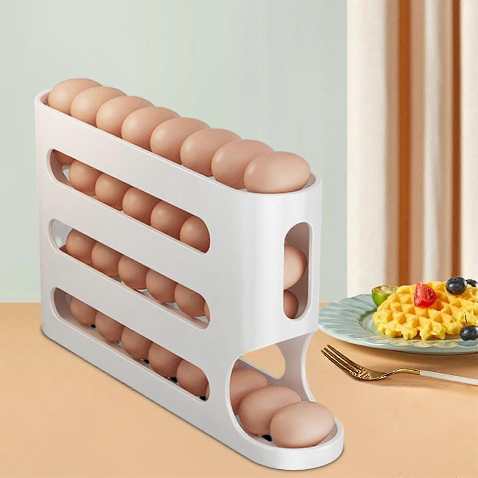 4-Tier Egg Organizer for Fridge, Space-Saving Auto-Roll Dispenser, 30-Egg Capacity, Large Rack Storage Solution