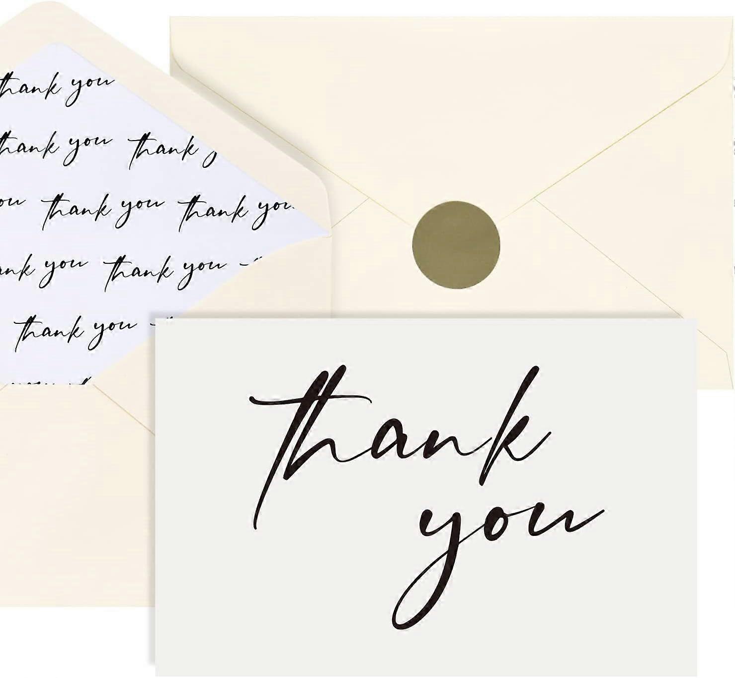 Thank You Cards with Envelopes Ivory - 50 PK - Wedding Thank You Cards 4x6 Inch