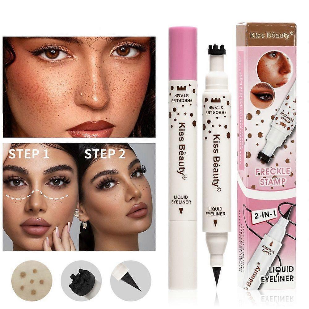 Freckle Stamp with Eyeliner Pen 2 in 1 for Natural Lifelike Faux Freckle Waterproof Fake Freckles Stain Marker for Long Wear Sunkiss Makeup