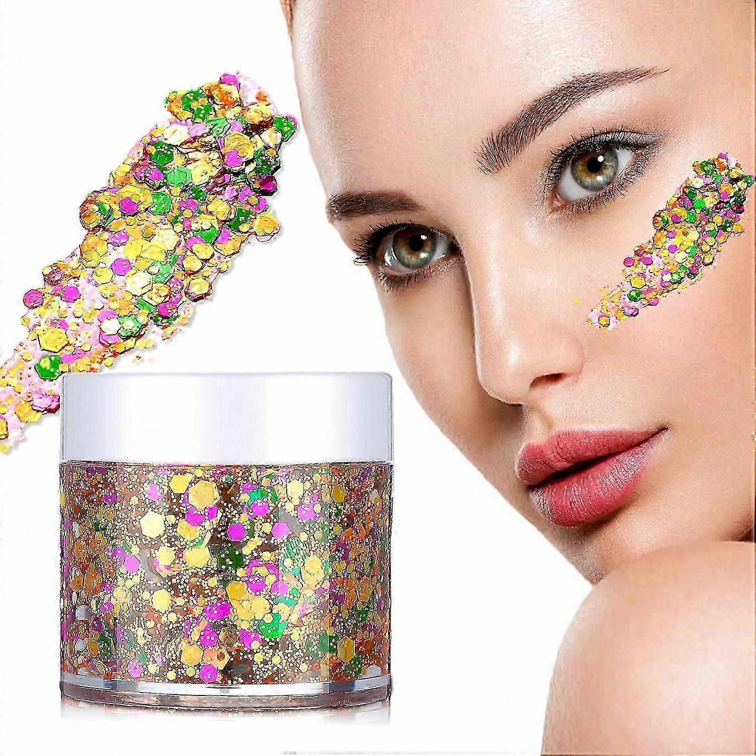 Festival Glitter Gel for Body, Face, Hair & Lips, Light-Responsive Color Change, Chunky Glitter for Celebrations