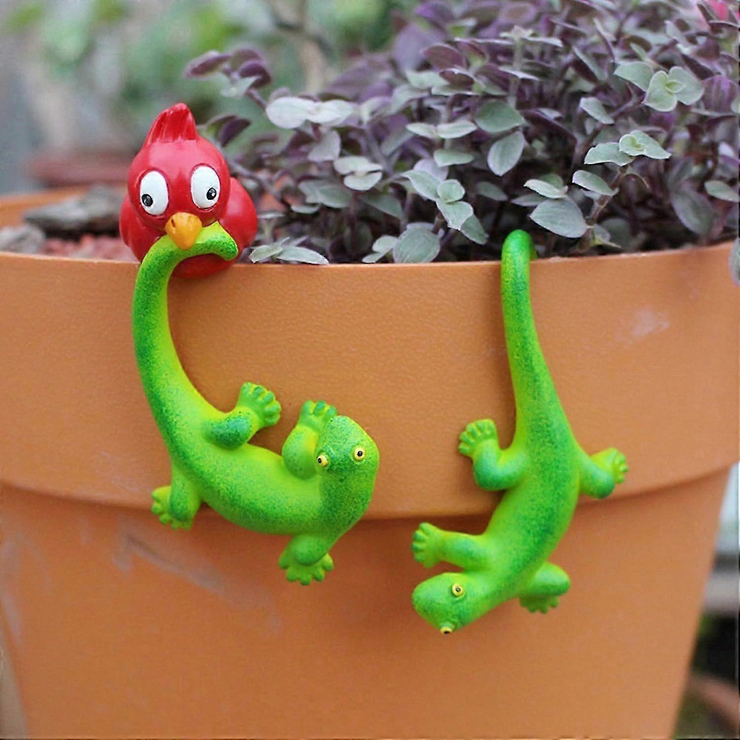 Resin Garden Lizard Decor, Hanging Pot Ornament, Outdoor Animal Statue for Yard and Patio Decoration