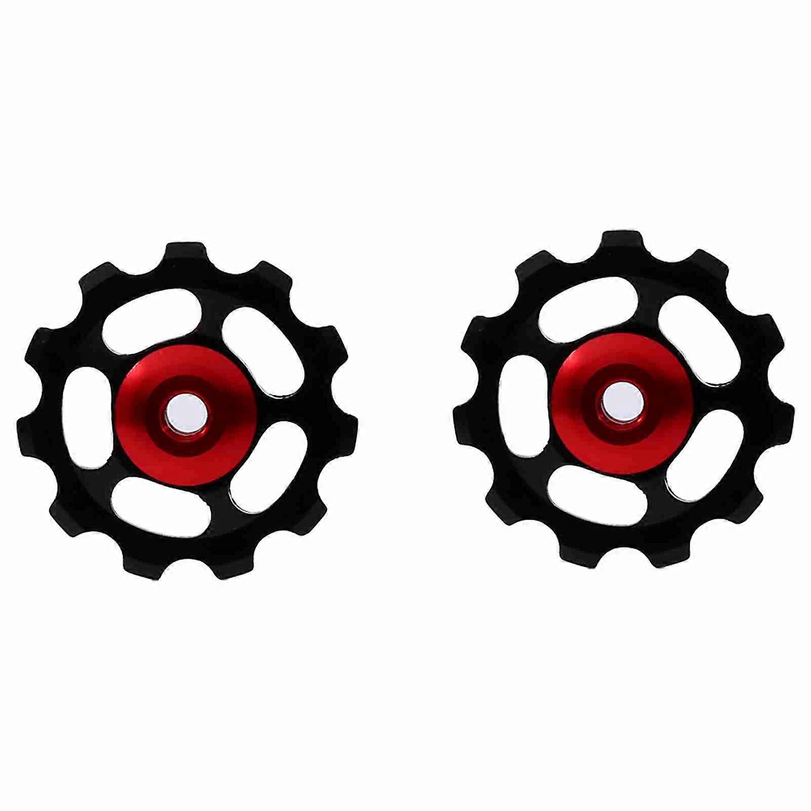 2pcs Aluminum Alloy 11T CNC Jockey Wheel Bike Jockey For Bicycle Bike(black+red)