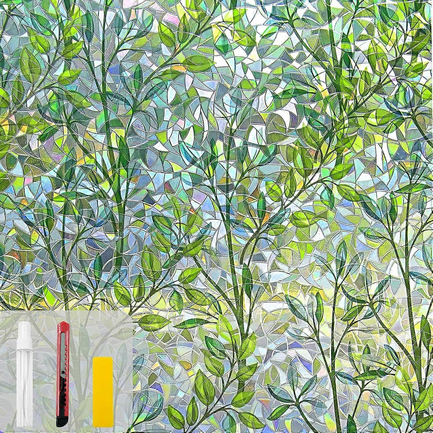 Reusable decorative stickers for rooms (leaf rainbow patte stained glass window film rainbow window film non-adhesive window stickers Window film