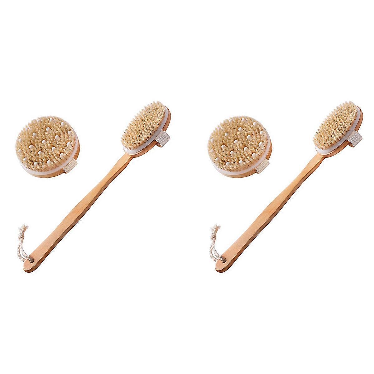 [Skin & Energy-giving]The body brush helps clean dirt, reduce the appearance of cellulite, dead skin cells, unclog pores and release toxins, make the skin smooth and shiny, and enhance the elasticity and softness of the skin; improve blood circulation and stimulate the lymphatic system to sweat the toxins out. [For Wet and dry]When it's dry: It is a good brush for tightening the skin. By stimulating the lymphatic system to toxins. Wet: It becomes soft after being washed by hot water, suitable for body cleaning. Use this body brush exfoliator to exfoliate the skin, which can the skin renewal speed and make your skin naturally younger. [Natural Bristles]Made of the grade 100% Natural Bristles, which has elastic, indeformable and humidity features and very gentle to the skin. The handle is made of smooth polished wood. [Better Reach& Well Holding]Our long handle shower brush has a total length of 16.5 inches, which is suitable for cleaning your back and other hard-to-reach areas; 2 oval-shaped brush heads have woven straps on the back to provide you with grip during use; The round brush head with a silica gel column has a massage function, allowing you to relieve the fatigue of the day. Colour:Wood color Material:Wood Size:42cm Package Contents: 2 * Bath Brush Long Handle 2 * Round Back Brush Only the above package content, other products are not included. Note: Light reflection and different displays may cause the color of the item in the picture a little different from the real thing. The measurement allowed error is +/- 1-3cm.