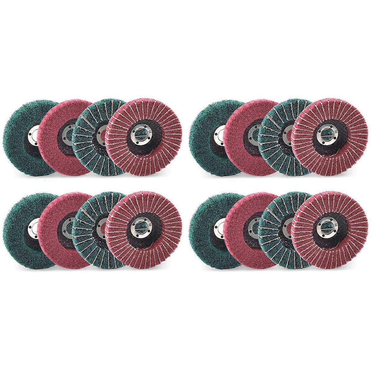 16PCS 4 Inch Red & Green Nylon Fiber Flap Discs Set Assorted Sanding Grinding Buffing Wheels for Ang