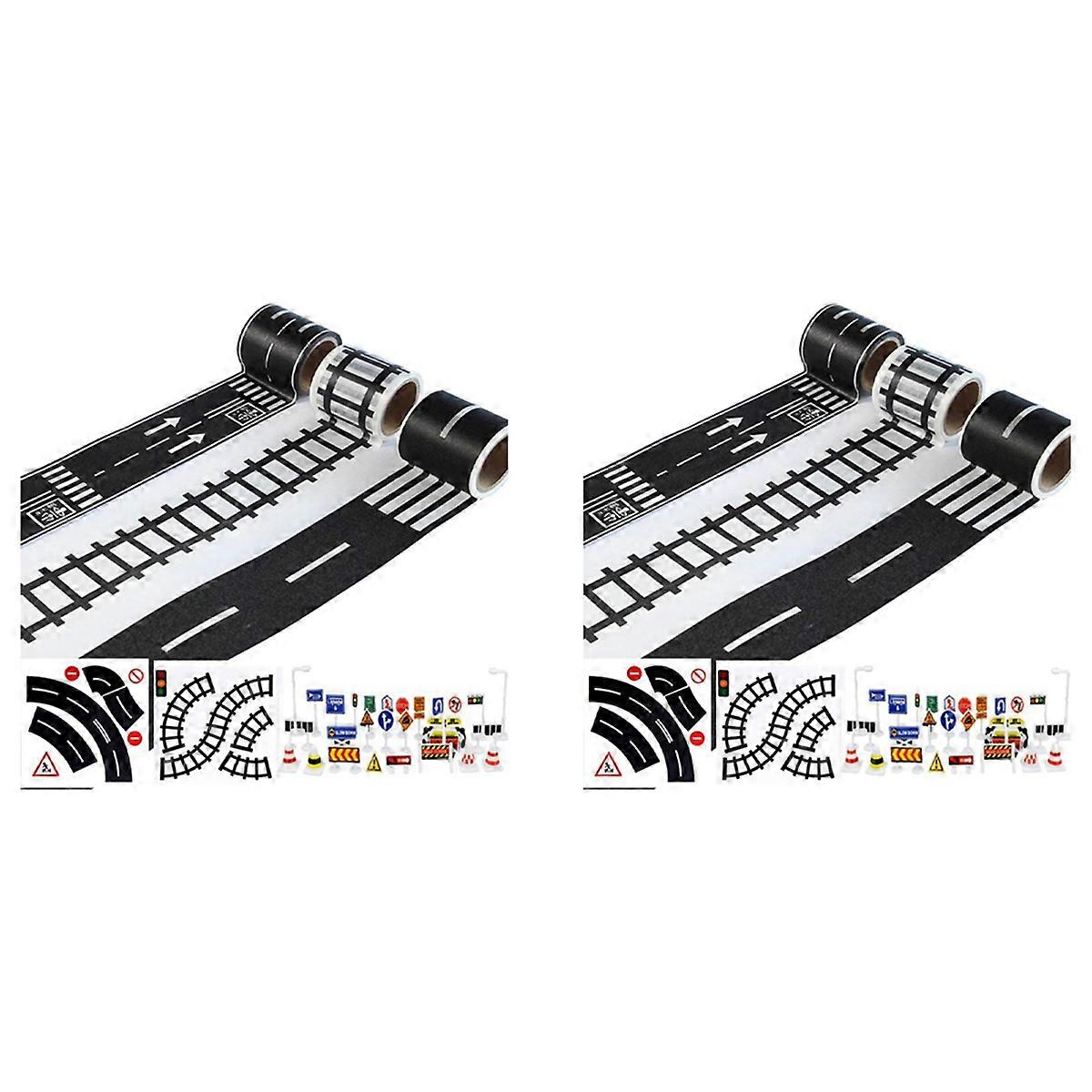 2 set Play Road Tape for Toy Cars and Trains 3 Rolls 4.8cmx5M Straight Curve Track Traffic Signs - K