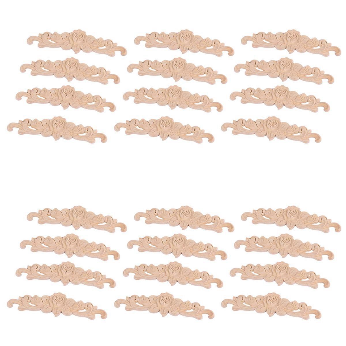 24Pcs 20 x 5cm Rubber Wood Carved Long Onlay Applique Unpainted Rose Flower Door Home Decor European