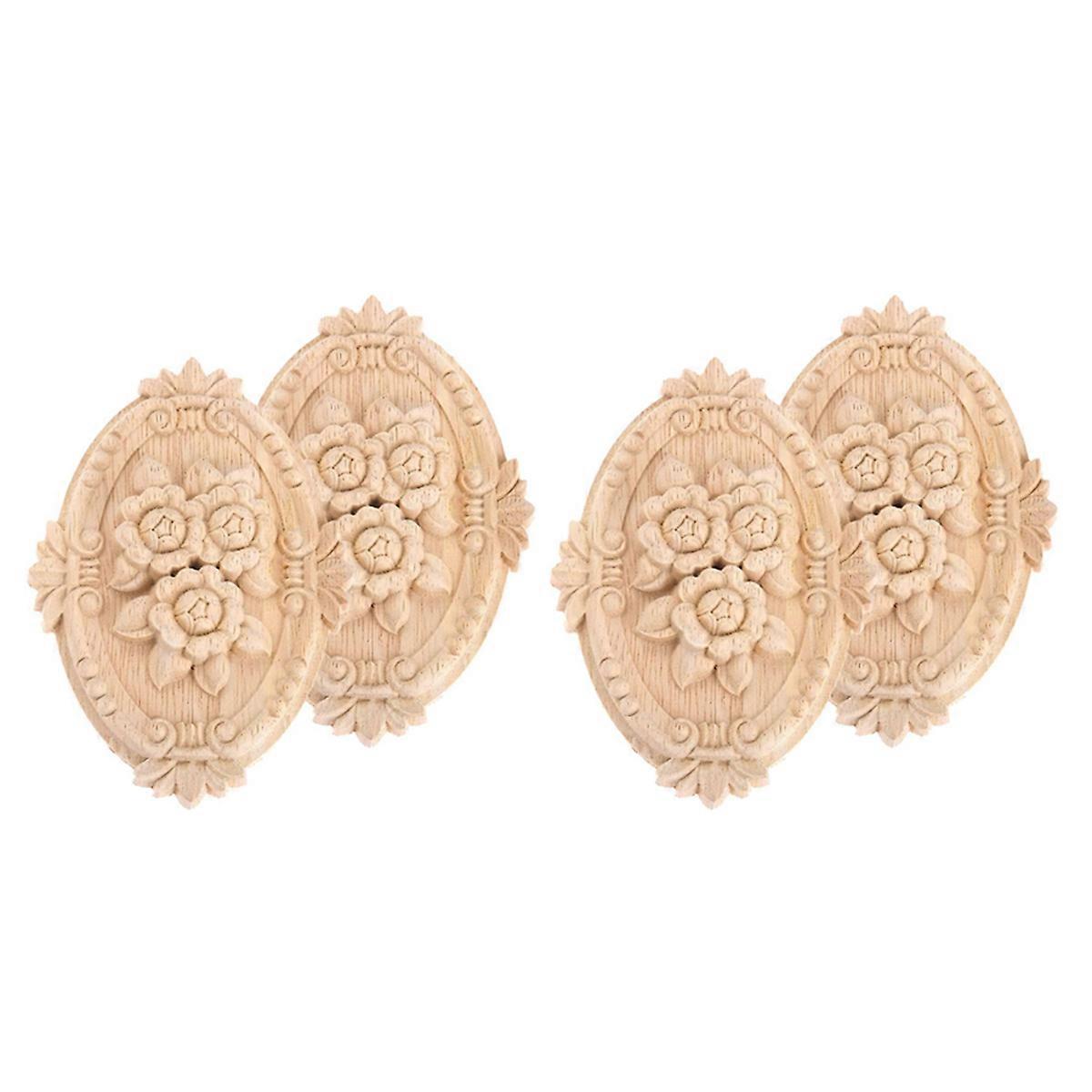 4Pcs Wood Carved Applique Frame Onlay Unpainted Furniture Decoration Unpainted Oval Patterns 21X15cm