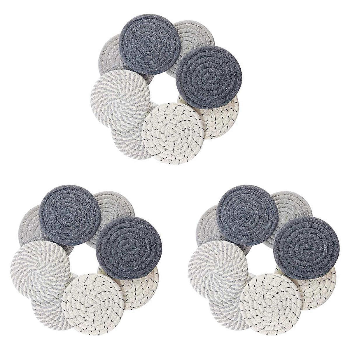 24 PCS Set With Coaster Holder: 24 Pcs coaster set come with an iron metal coaster holder to organize your coasters for wooden table, nature brown color to match you farmhouse kitchen decor. No More Fear of Spills: drink coasters are handcrafted from high quality material. They are more absorbent than other silicone or ceramic coasters. This coaster instantly absorbs spilled mois and Thick Coasters for Drinks: Woven coasters are made of natural cotton ropes, which are very absorbent, thick and sturdy. it's diameter is the perfect size for almost any drink, cup, pots, and pans. Modern Farmhouse Decor: Comfortably holding weighted cups, mugs, wine glasses, tumblers, candles and plants. as a decorative piece when displayed on a desk, tabletop in your kitchen, dining room, home office or bedroom, too! A Great Gift for : Coasters for drinks absorbent with holder can not only absorb water well but also resist heat perfectly; hence they can be used as drink coasters as well as potholders. A great housewarming gift. color:Photo color Material:cotton rope size:11cm Package Contents: 24 x drink coasters Only the above package content, other products are not included. Note: Light reflection and different displays may cause the color of the item in the picture a little different from the real thing. The measurement allowed error is +/- 1-3cm.