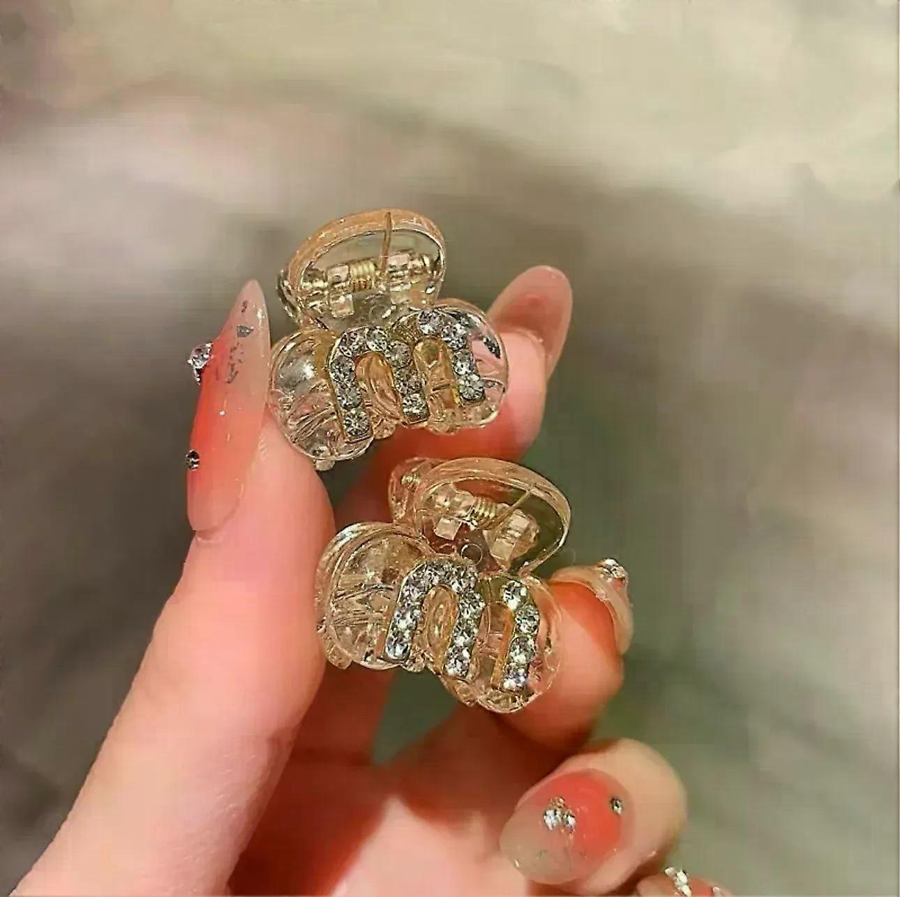 2pcs/bag Rhinestone Non-slip Grab Clips M Letter Small Hair Claws Girls Forehead Headdress Korean Fashion Women Hair Accessories
