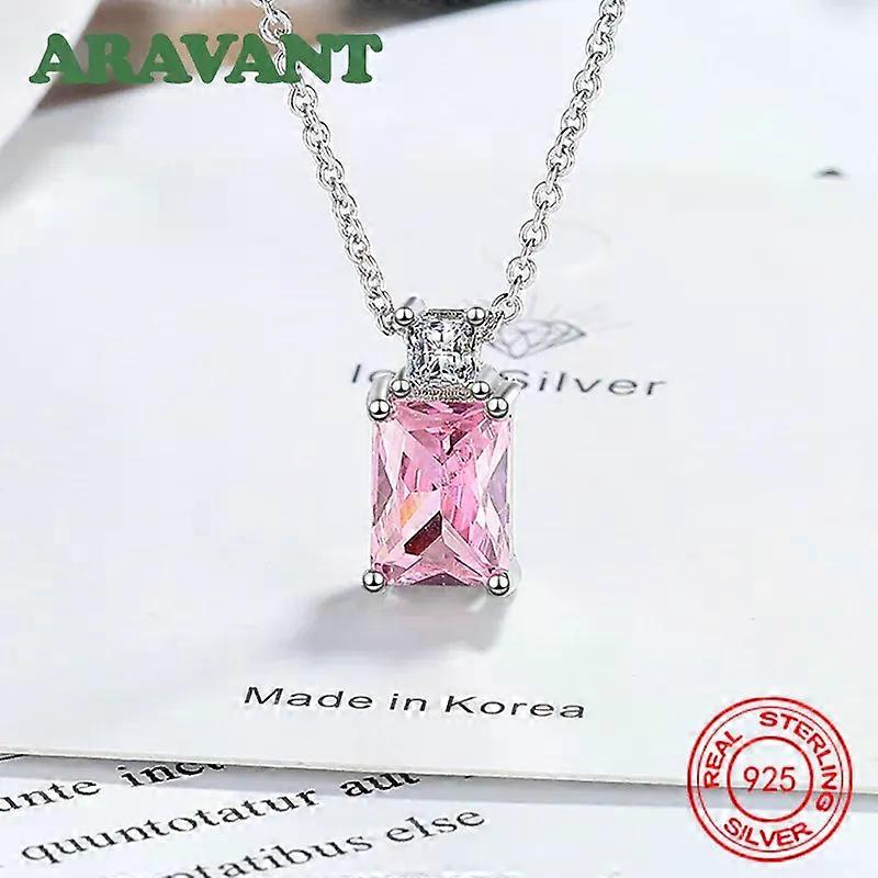Aravant 925 Silver Pink Zircon Pendant Necklace For Women Fashion Jewelry