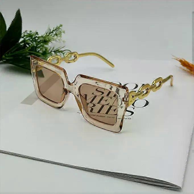 New Retro Square Women Sunglasses Fashion Vintage Oversized Candy Color Eyewear Outdoor Street Glasses Trendy Chain UV400 Shades