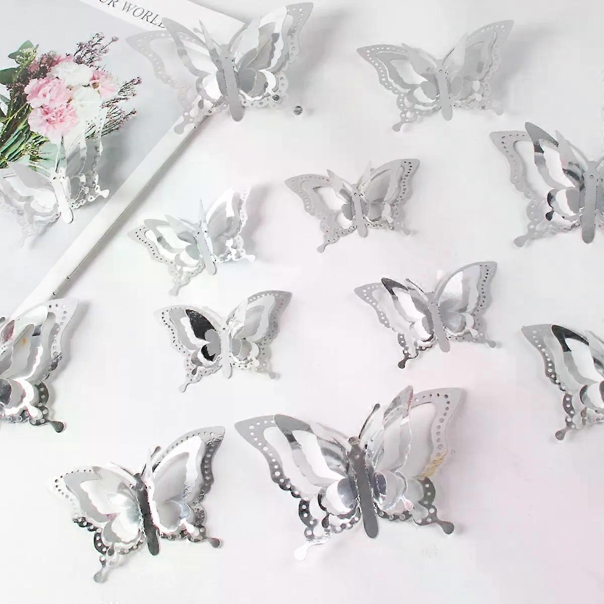 12/24pcs 3D Laser Butterfly Wall Sticker Wedding Wall Window Decal Summer Butterfly Birthday Party DIY Party Sticker Home Decor