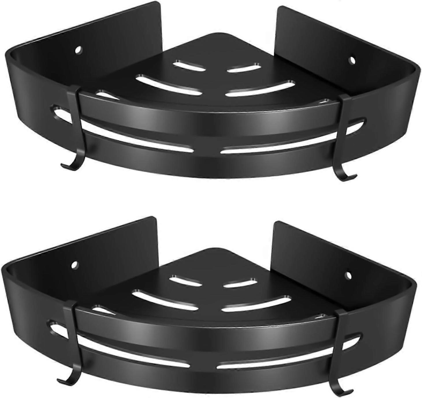 Bathroom shower rack 2-pack, shower organizer made of stainless steel 304 with hooks, no drilling (corner rack, matte black)