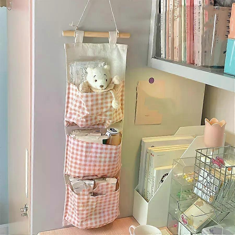 Pink Storage Bag Rack Canvas Wall Mounted Bedroom Storage Bag Multifunctional for Books Jewelry and Miscellaneous Items