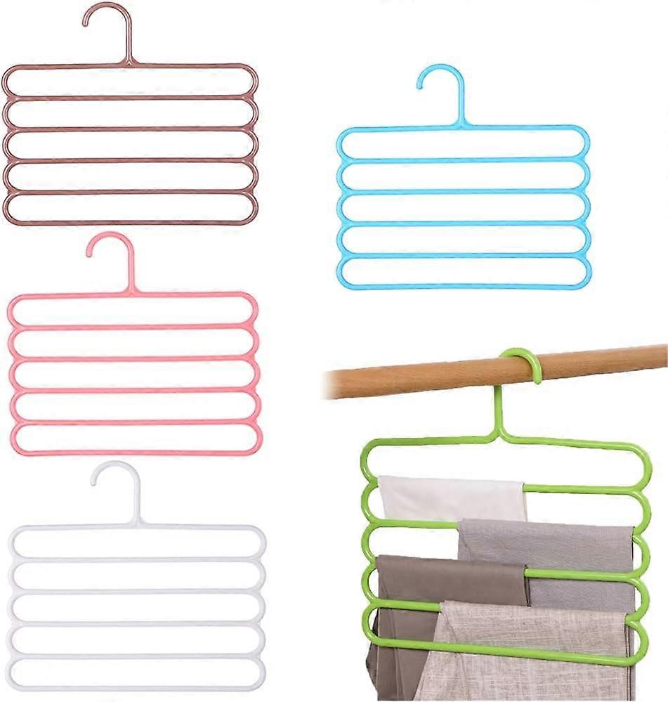 5 Layers PP Plastic Pants Hangers Non-Slip Space-Saving Hangers for Trousers Scarves 5-Piece Jeans Rack Trouser Hangers Ties and Towels (4 Mixe