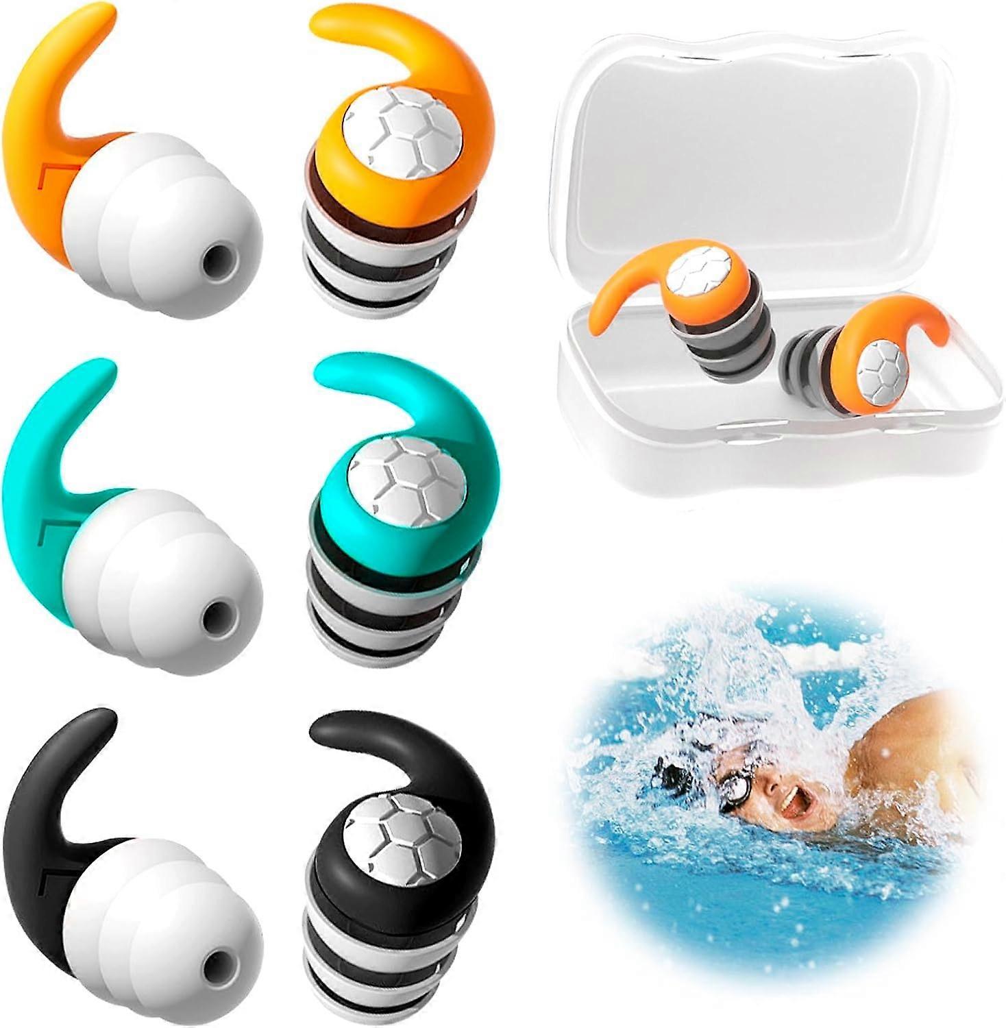 3 Pairs Soft Silicone Ear Plugs with Carrying Pouch Waterproof L Adult Swimming Ear Plugs for Sleep Study and Swimming Reusable