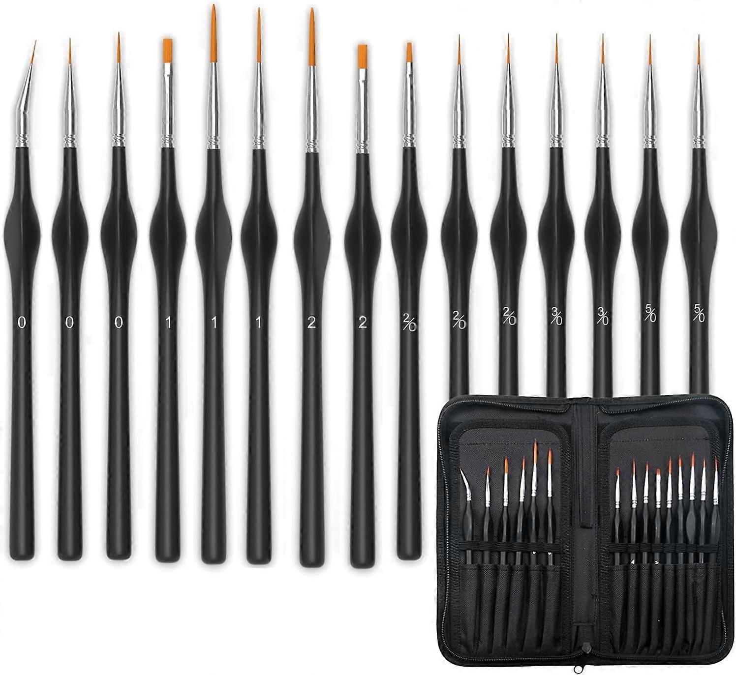 Professional mini fine paint brush set with carrying case. Set of 15 detailed paint brushes with case miniature paint brush set
