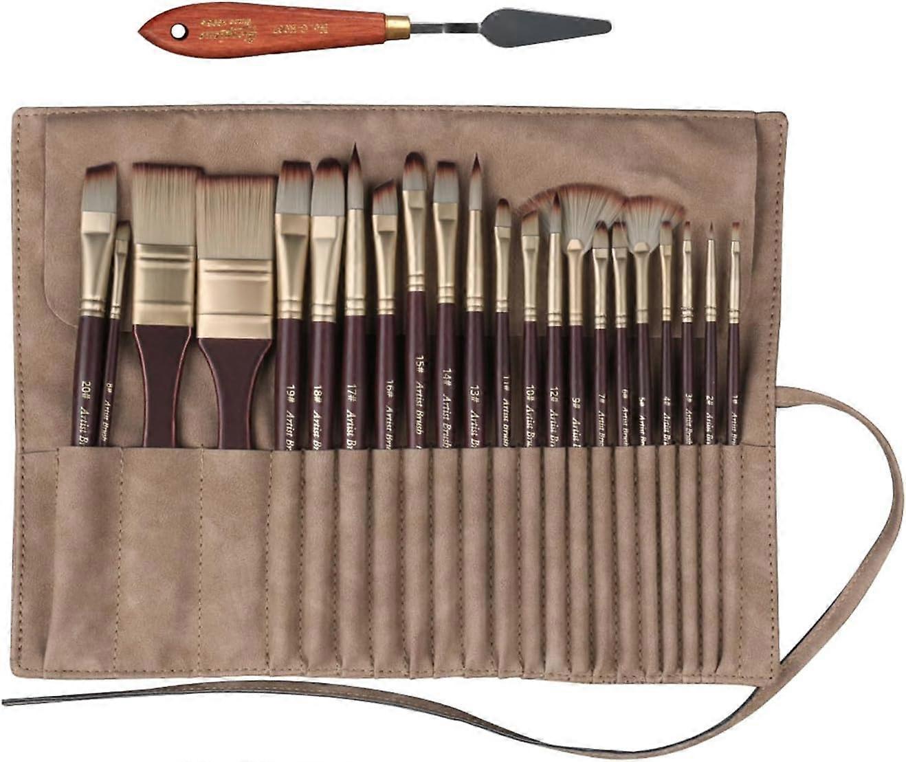 Rigger Cat's Tongue Fan Filbert Professional Set of 24 Synthetic Acrylic Paint Brushes - Multi-Shape Set: Flat Corner Round