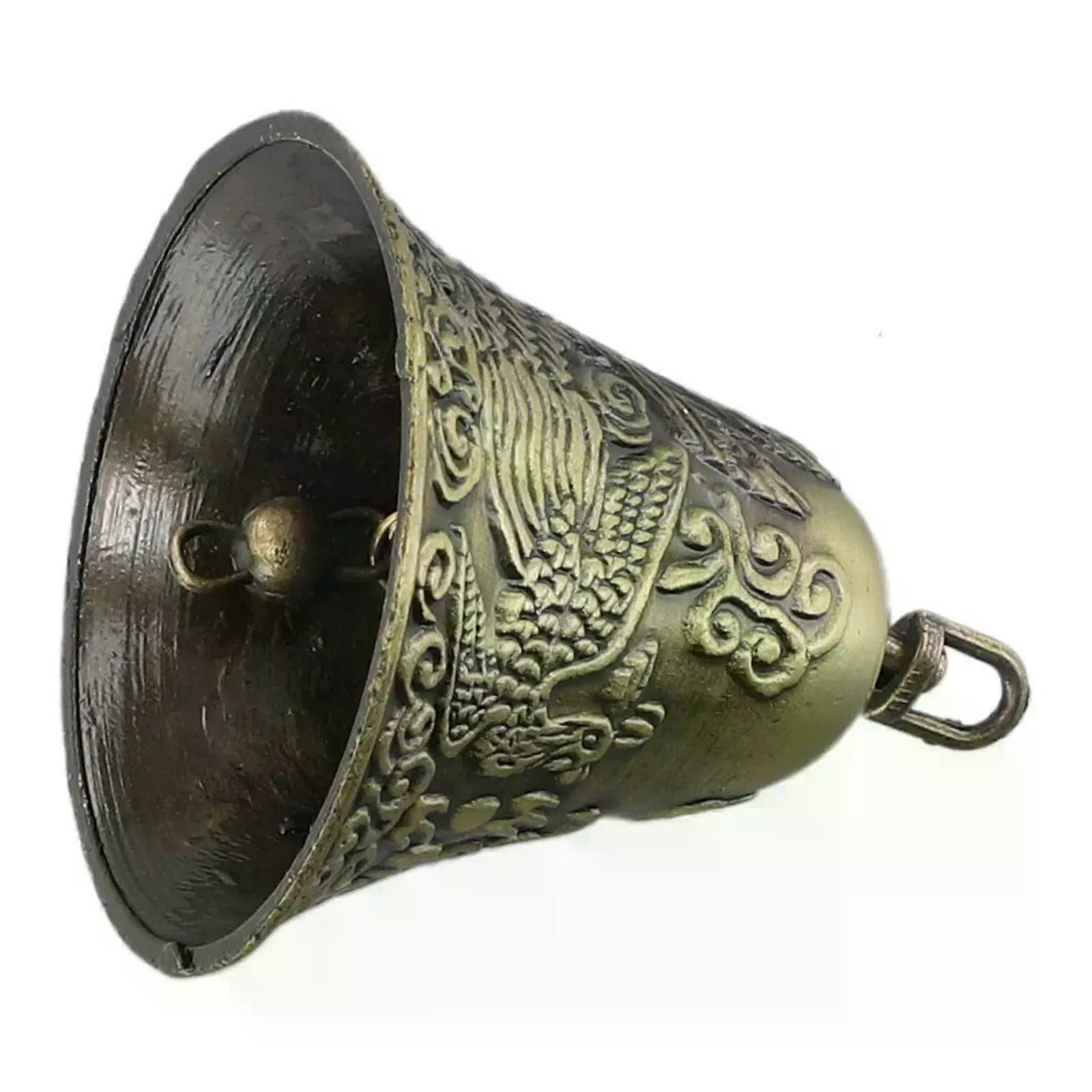 Vintage Antique Engraved Dragon Phoenix Brass Grazing Bell For Farm Cow Horse Sheep Dog Cat Animal Copper Bell