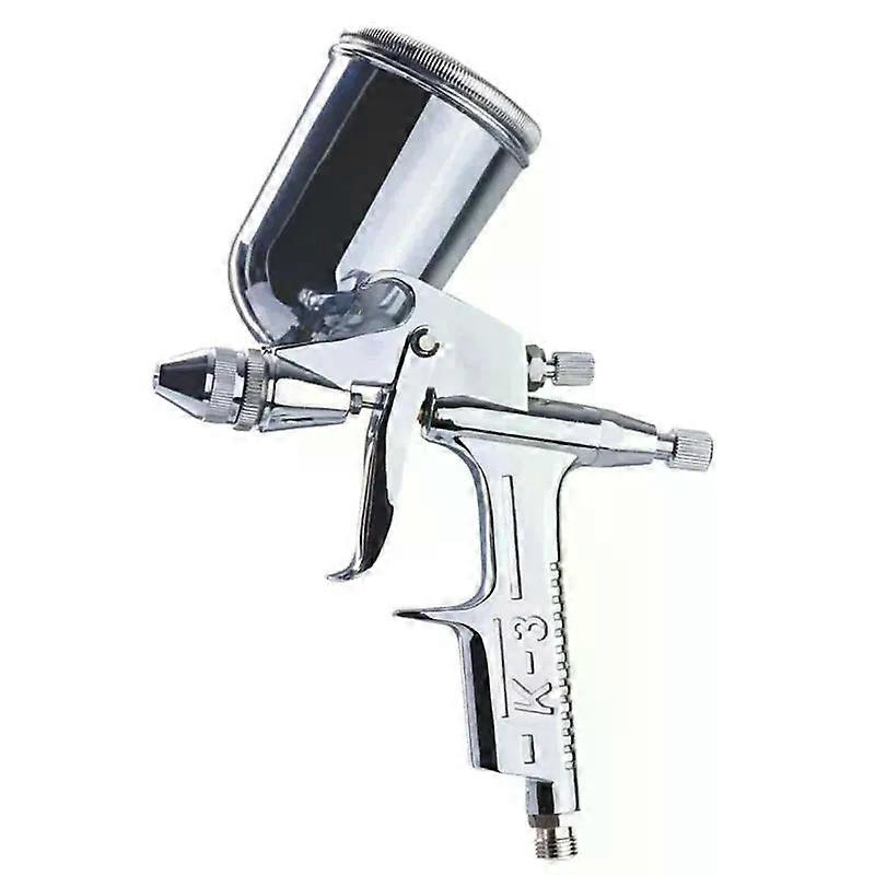 125ml Mini Spray Gun 05mm Nozzle Pneumatic Sprayer Professional Car Painting Repair Airbrush Features: * new and high quality *Simple operation, good atomization effect *Applicable to automobile spray paint, wood spray paint, wall spray paint *Atomizing: improve paint efficiency, uniform and fine, copper processing, wear - resistant, durable *Spraynozzles: made of stainless steel, hardened and wear-resistant, with longer service life and better sealing *Spray rangecontrol:spray rangeknob adopts special anti-skid design, with fine spraycontrol to save paint *Air pressure adjustment: turn the adjusting screw clockwise to reduce the air quantity and counterclockwise,it increases *Spray Machine trigger: flexible operation, good feel *Perfect ergonomic design to reduce wrist fatigue Specification: Model: K-3 Material: aluminum Nozzle Size: 0.5mm Recommended spraying pressure: 40psl Recommended spraying distance: 16-25cm Maximum. air intake pressure: 10.0bar Spray bottle capacity: 125ml Feeding mode: gravity type Gas consumption: 35L/min Connector: C type quick connector Size: Approx. 22 x 13.8cm/8.66 x 5.4in Weight: Approx.294g/10.4oz Package list: 1 x Spray Machine 1 x Brush 1* Paint pot Note: Please note that the new type and old type of this product will be sent randomly, and make sure you will not mind before ordering. _x000D_