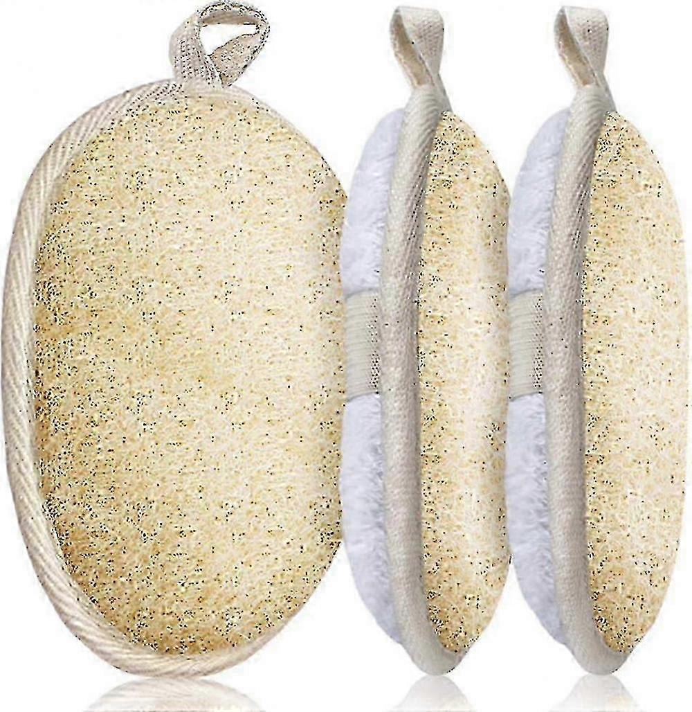 Three Pack Large Exfoliating Loofah Pads, 100% Natural Luffa & Terry Cloth for Close Skin Scrubbing