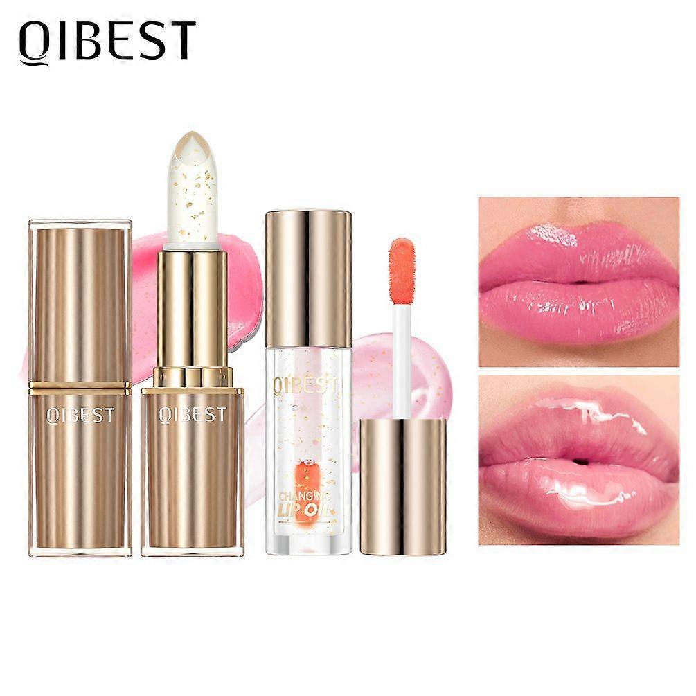 Color Changing Lipstick + Lip Oil, Gold Crystal Color-Changing Lipstick - 24HR Transferproof & Moisturizing Lip Gloss, Long-Lasting Glossy Finish for