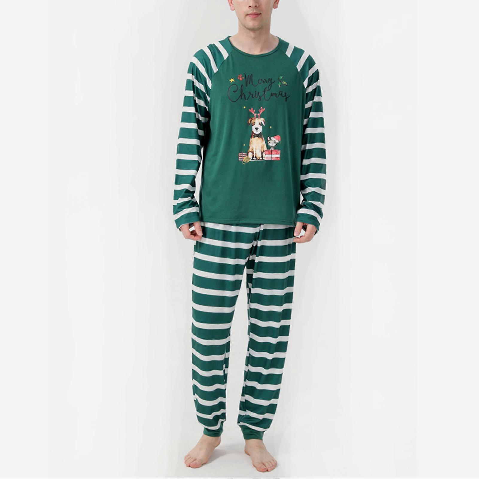 GPB Christmas Family Matching Pajamas Set Cartoon Print Striped Long Sleeve Sleepwear for Men Women Children Family Pajamas Set MEN M