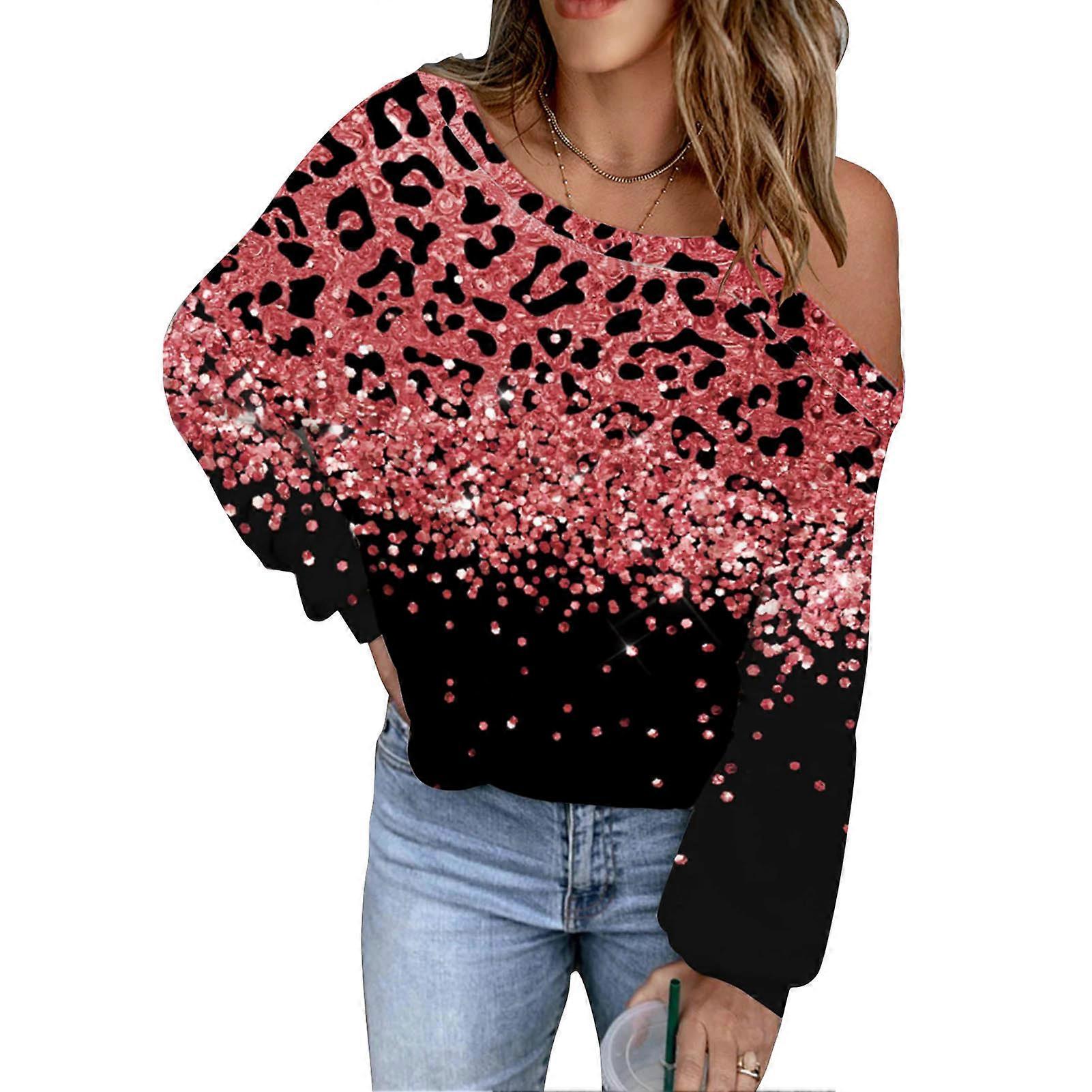 GPB Cold Shoulder Long Sleeve Top Loose Comfortable Color Blocking Women Off Shoulder Pullover for Christmas Black M