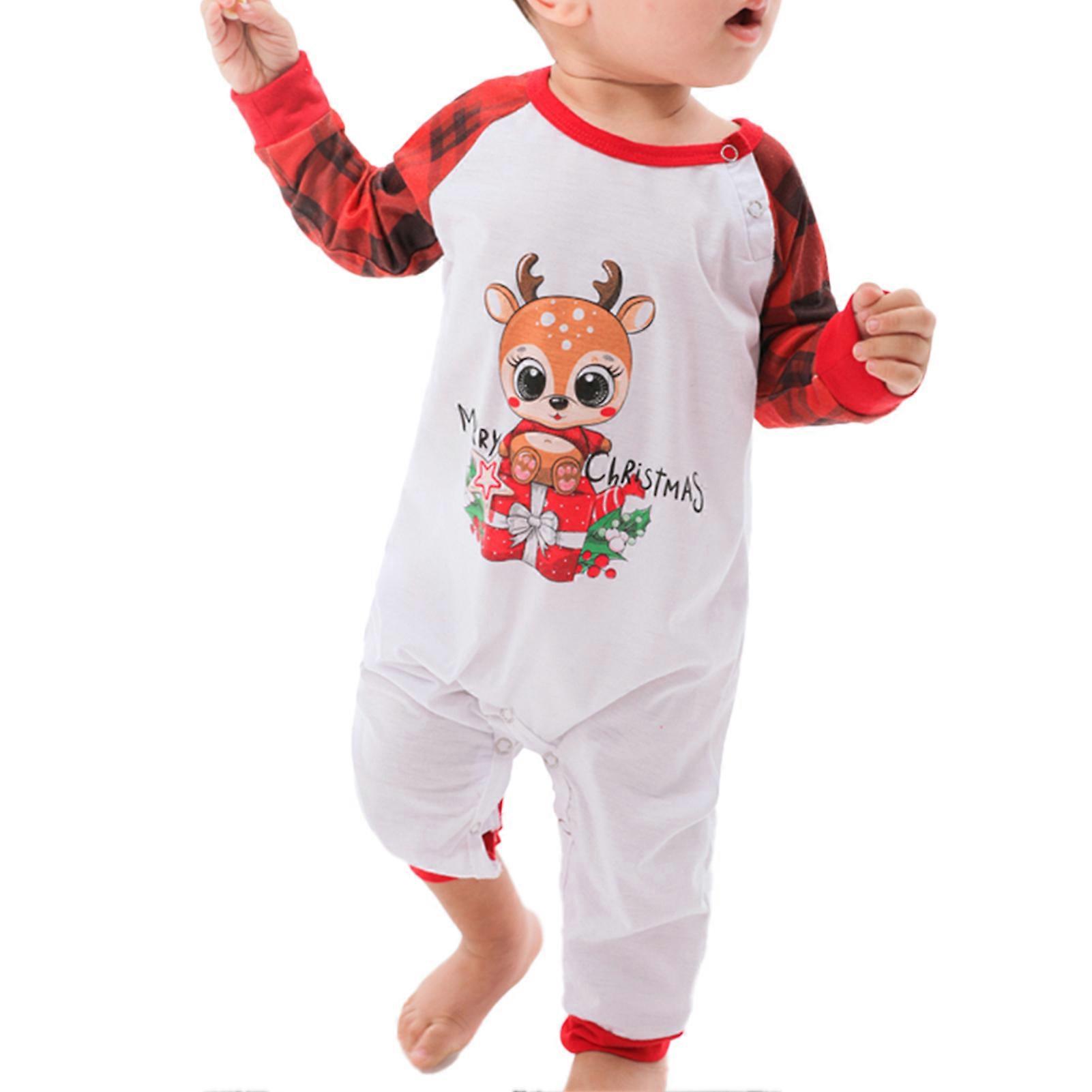 GPB Christmas Family Pajamas Set Plaid Print Crewneck Splicing Elastic Waist Parent Child Sleepwear Red Baby 18-24M