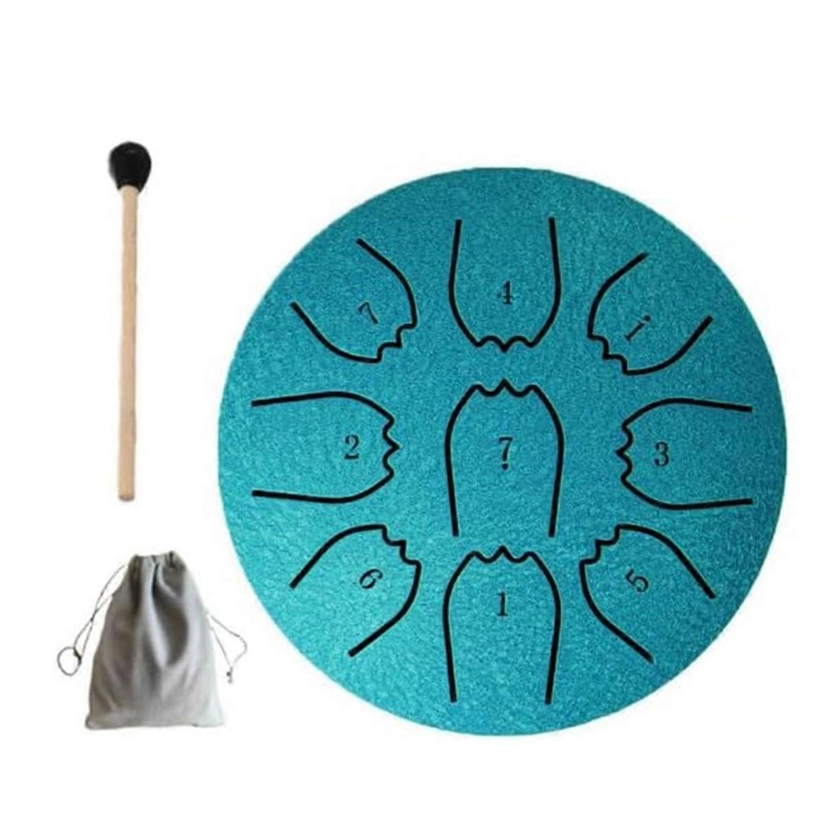 Rain Drum Instrument - The Rain Tambourine is designed to capture the peaceful sound of rain,Designed for outdoor use, it turns your garden into a rain concert, resonating with natural rainfall and providing a peaceful experience. Excellent design and craftsmanship - Steel Tongue Drums are handmade by artisans,The is painted to prevent and rust. The drum body is full and round, combining stylish design, simplicity and portability. and exquisite garden decoration - The rain drum is not just a simple musical instrument, but a for your outdoor space. Its stylish design complements any garden decoration and adds a scenery to your environment Color: Blue & Green Material: Carbon Steel Package Contents: 1 x Drum 1 x drumstick 1 x storage bag Only the above package content, other products are not included. Note: Light reflection and different displays may cause the color of the item in the picture a little different from the real thing. The measurement allowed error is +/- 1-3cm.