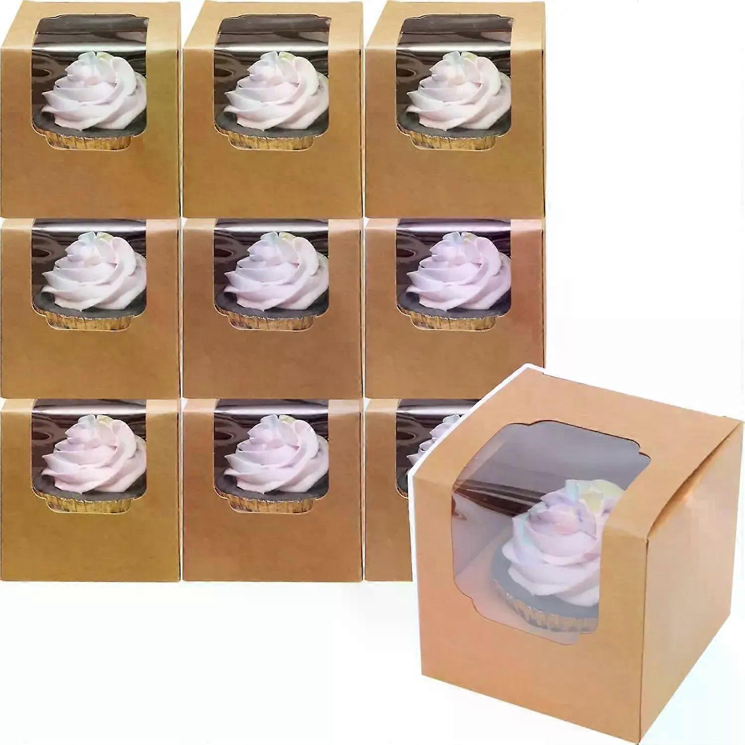 10/20/30pcs KhakiSingle Cupcake Boxes Paper with Insert and Clear Window Fold Individual Cupcake Containers for Muffins Party