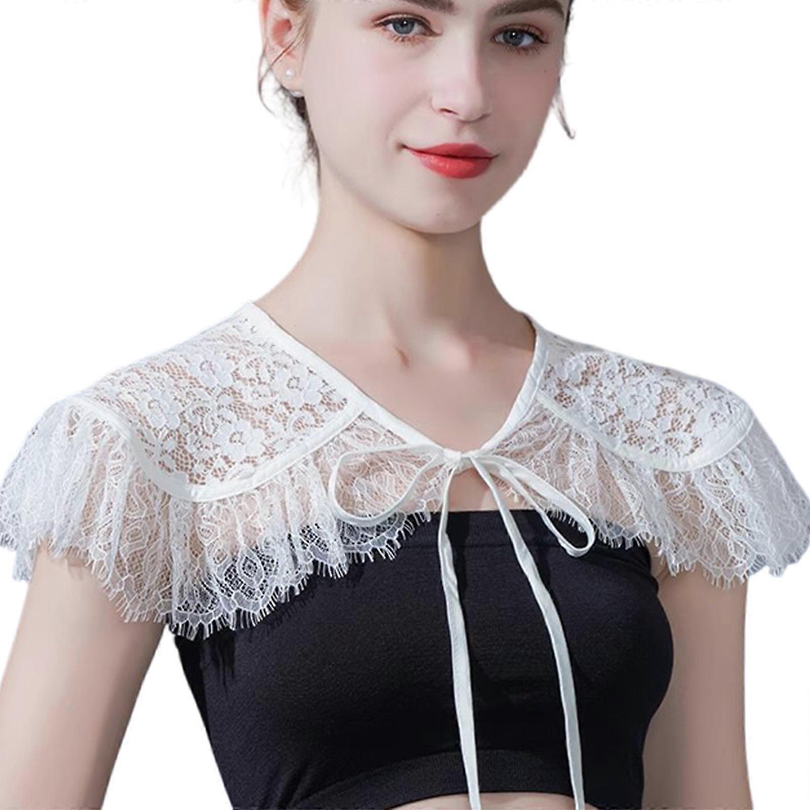 Elegant Lace Trimmed Polyester Shawl For Weddings Parties Office Lightweight Breathable Wrap White