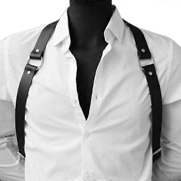 Adjustable Faux Leather Chest Harness Suspender Belt with O-Ring for Men
