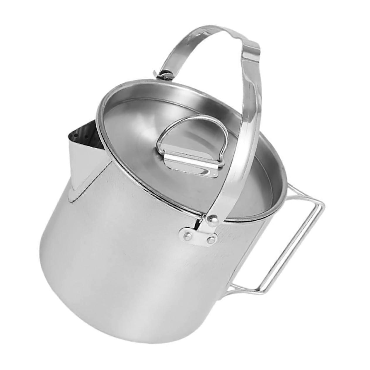 - Multipurpose use: Functions as a kettle, coffee pot, or teapot to meet a range of outdoor dining needs. Made from stainless steel for durability. Suitable as an outdoor camping mini pot. - Lightweight and portable: Ideal for hiking and camping. Designed for easy carrying so you can enjoy hot drinks wherever you go. Commonly used as a camping kettle and a portable hot water kettle. - Hanging design for convenient heating: Designed to be used over outdoor fires, providing stable heating without direct flame. Makes heating easier and safer in campfire setups. Also described as a stainless steel camping pot or backpacking pot. - Multifunctional design: Can be used as a kettle, coffee pot, or teapot to suit different outdoor dining habits. Referred to as a stainless camping kettle and a stainless steel hiking pot. Practical use scenarios: - At a campsite, use to boil water for tea or coffee after a day of hiking. - On a trail or during a hike, heat water for hot beverages or instant meals for quick refreshment. - Over a campfire, hang the pot to provide stable heating without direct flame, ideal for warming drinks or light cooking while backpacking.