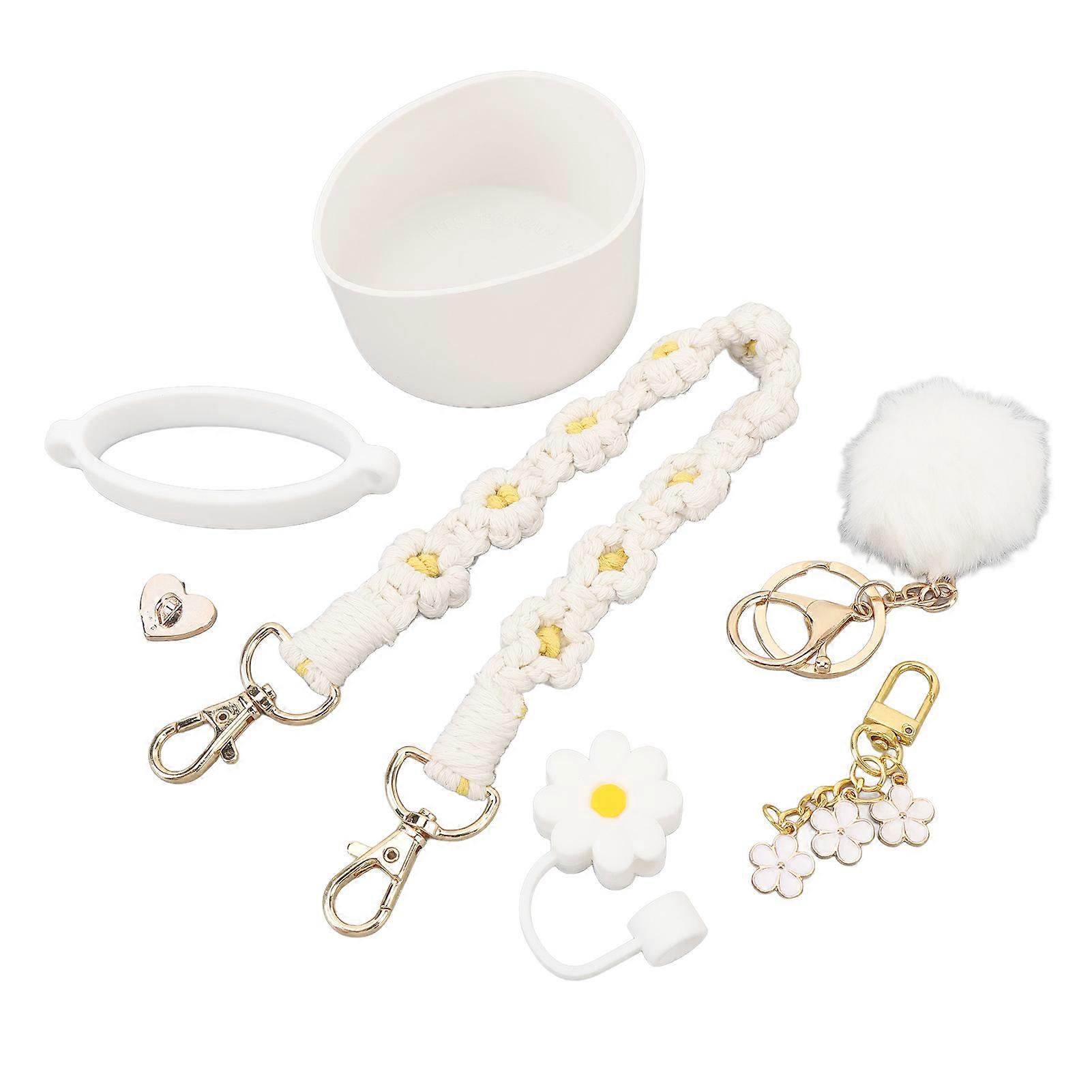 White Cup Accessories Set Straw Cap Plush Ball Pendant Silicone