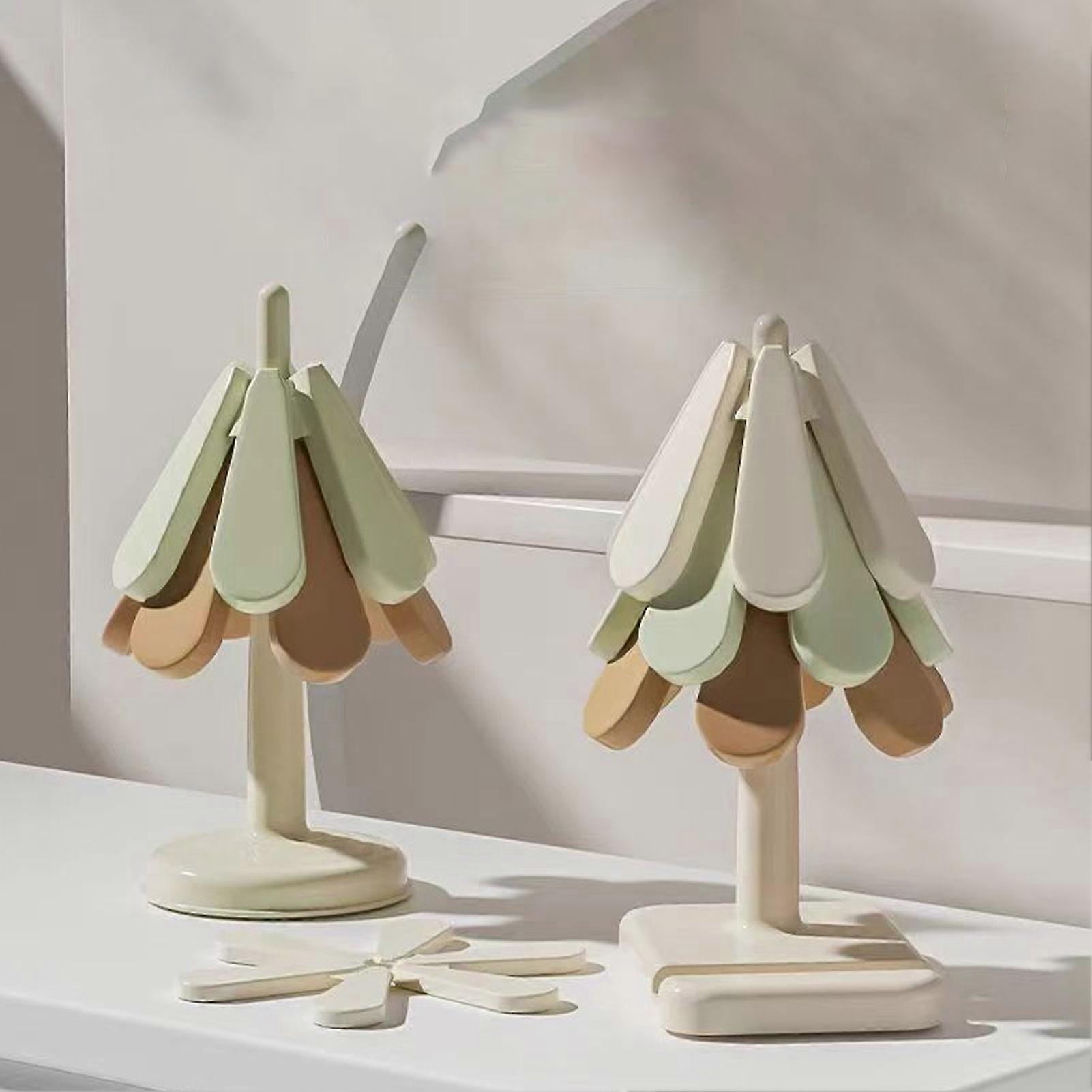 Tree Trivet Heat Insulation Folding Tree Trivet Heat Resistant Anti Scald Pads for Kitchen Countertop Square Base Item Type: Tree Trivet Material: Silicone, ABS Unfolding Diameter: Approx. 18cm / 7.09in