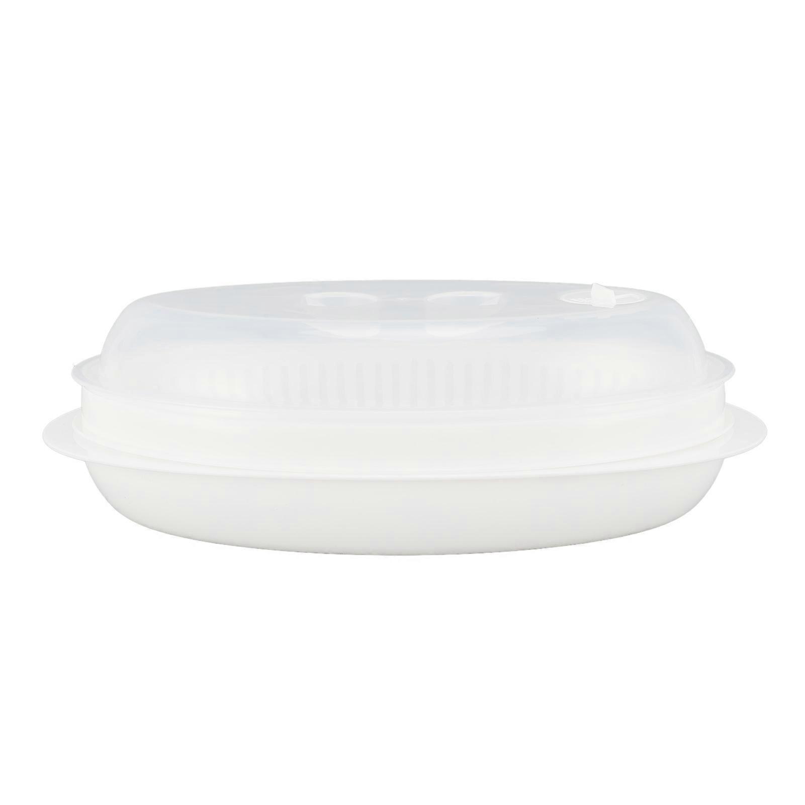 Microwave Steamed Fish Plate with Cover 32.7x18.6x9.5cm PP Material