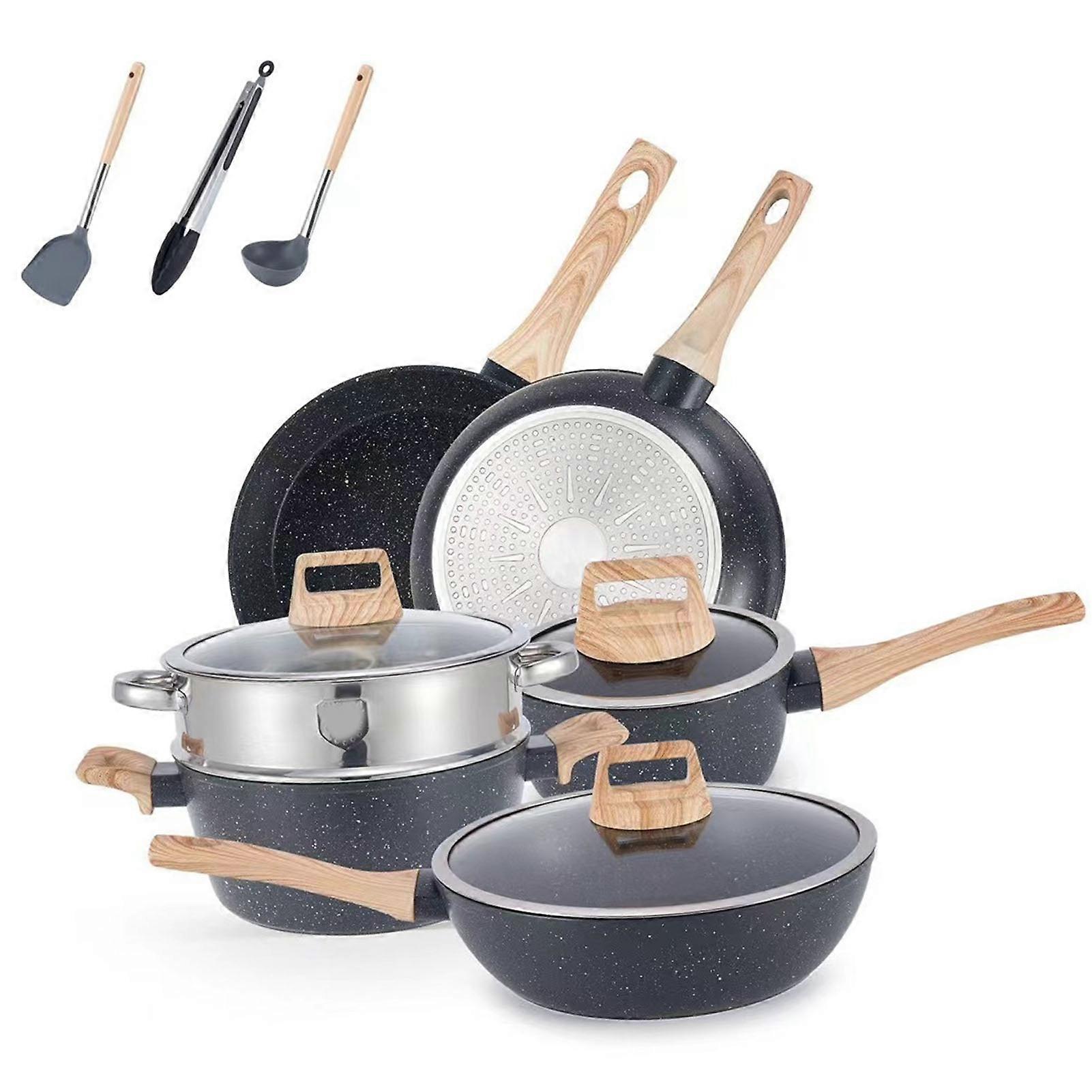17-Piece Granite Non-Stick Cookware Set Black, 11in & 9in Pans