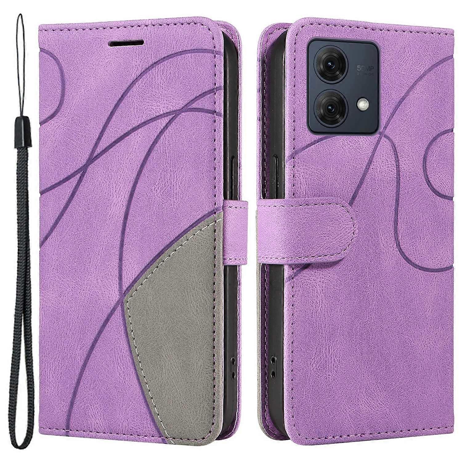 For Motorola Moto G84 5G Leather Case Wallet Stand Color Splicing Phone Cover - Light Purple