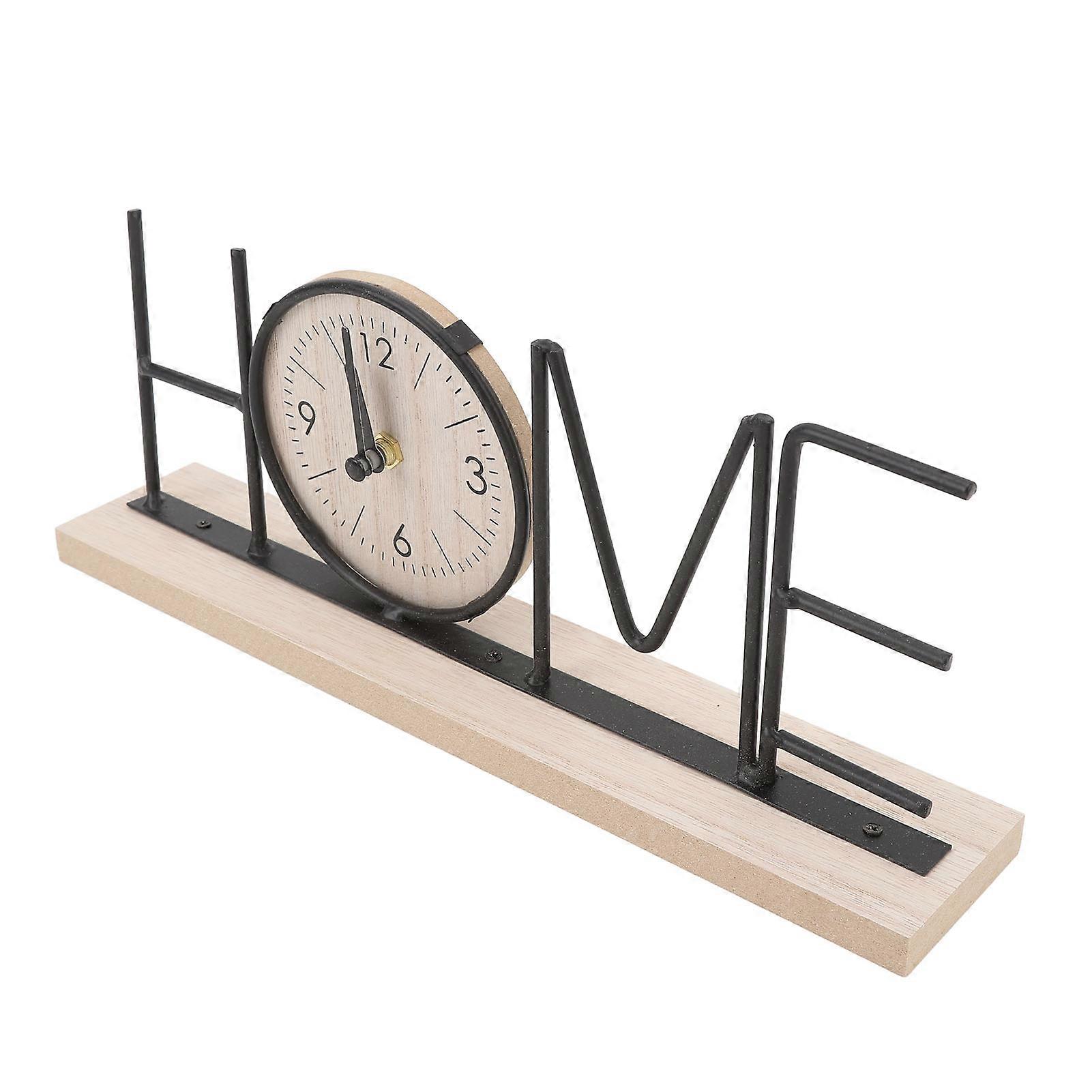 Desk Shelf Clock Wood Iron Battery Operated Modern Decorative Letter Table Clock Ornament for Living Room Dining Room Bedroom Office HOME Version Item Type: Desk Clock Material: Composite Wood, Iron Art Product Size: Approx. 31x6x12cm/12.2x2.36x4.72in Battery: 1 x AA Battery (Battery Not Included)